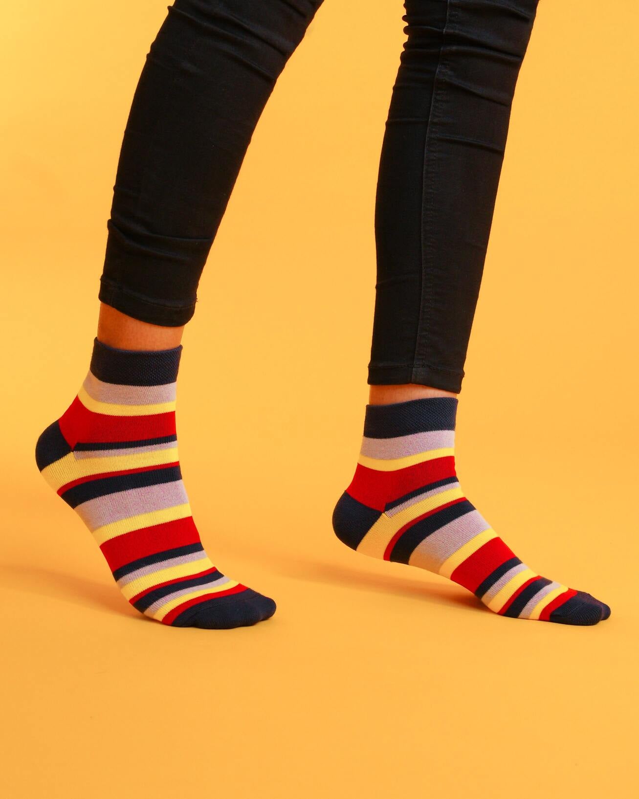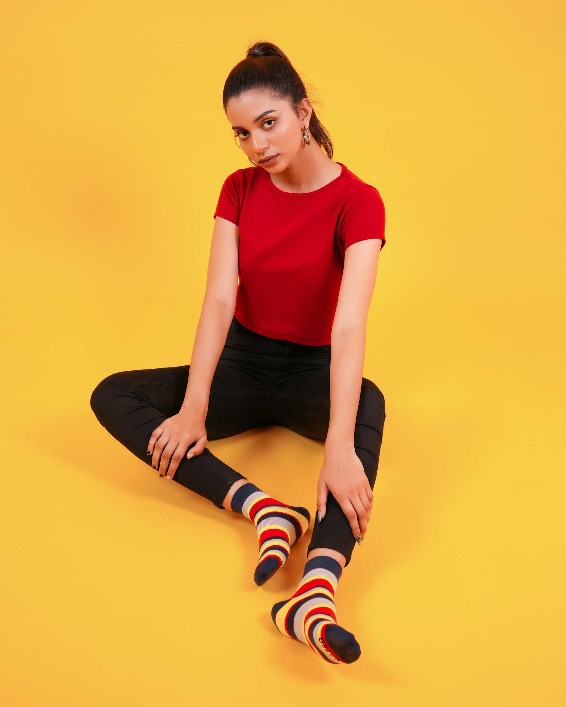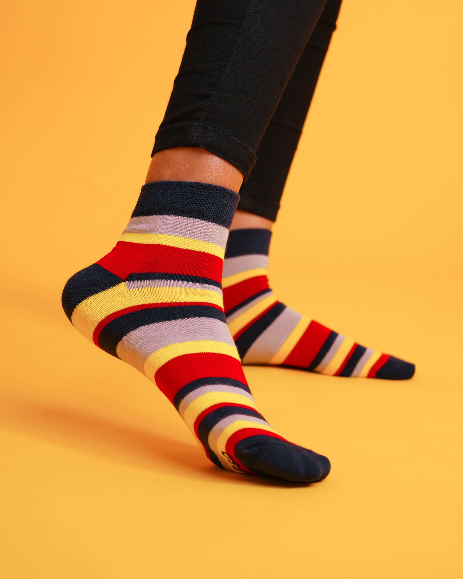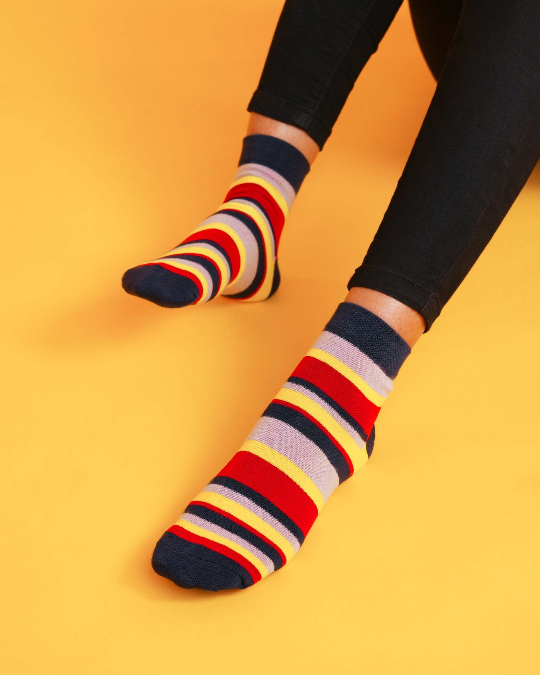 A Splash of Color to Brighten Your Day! These socks are a burst of vibrant colors! They not only keep my feet cozy but also bring a smile to my face every time I put them on.