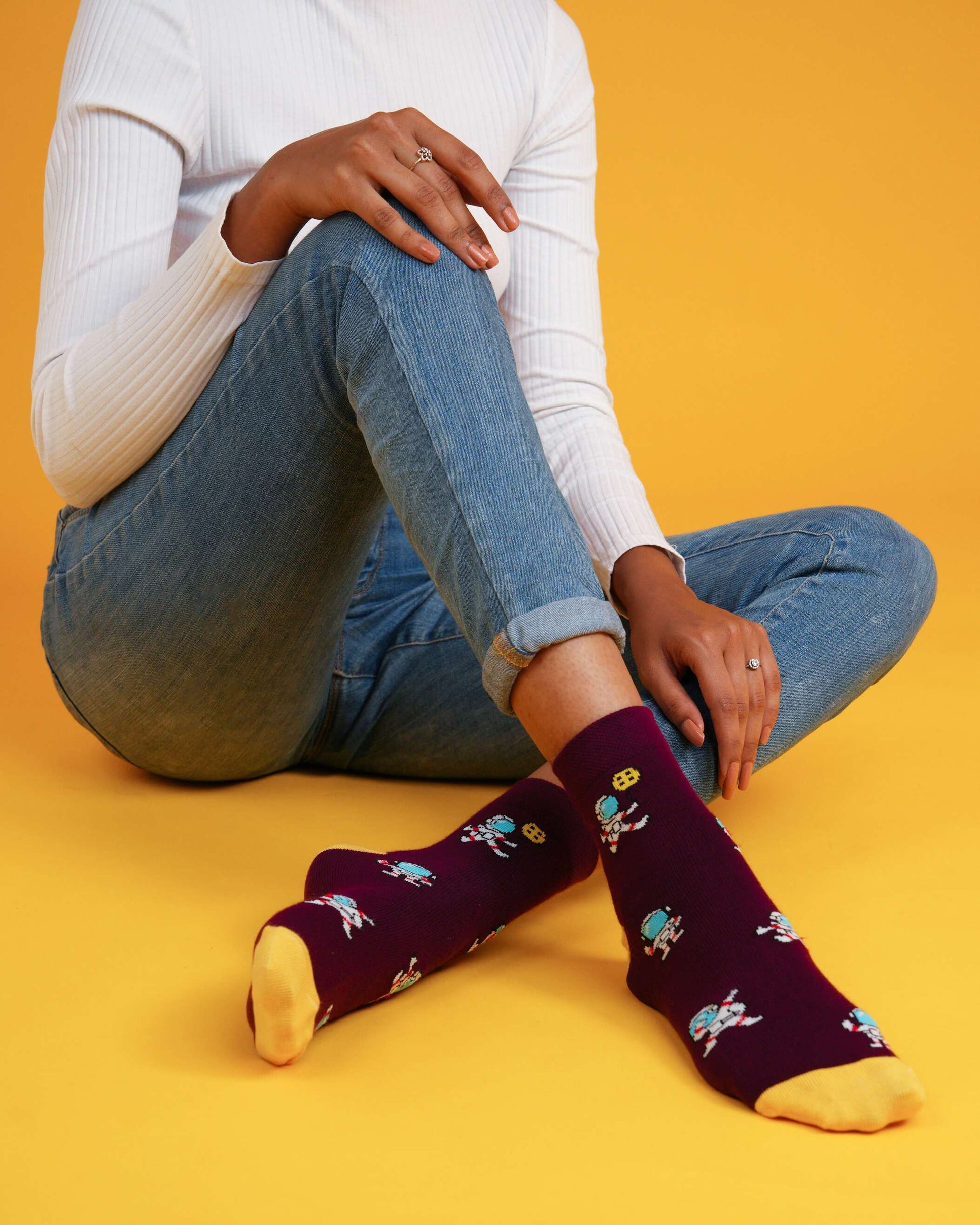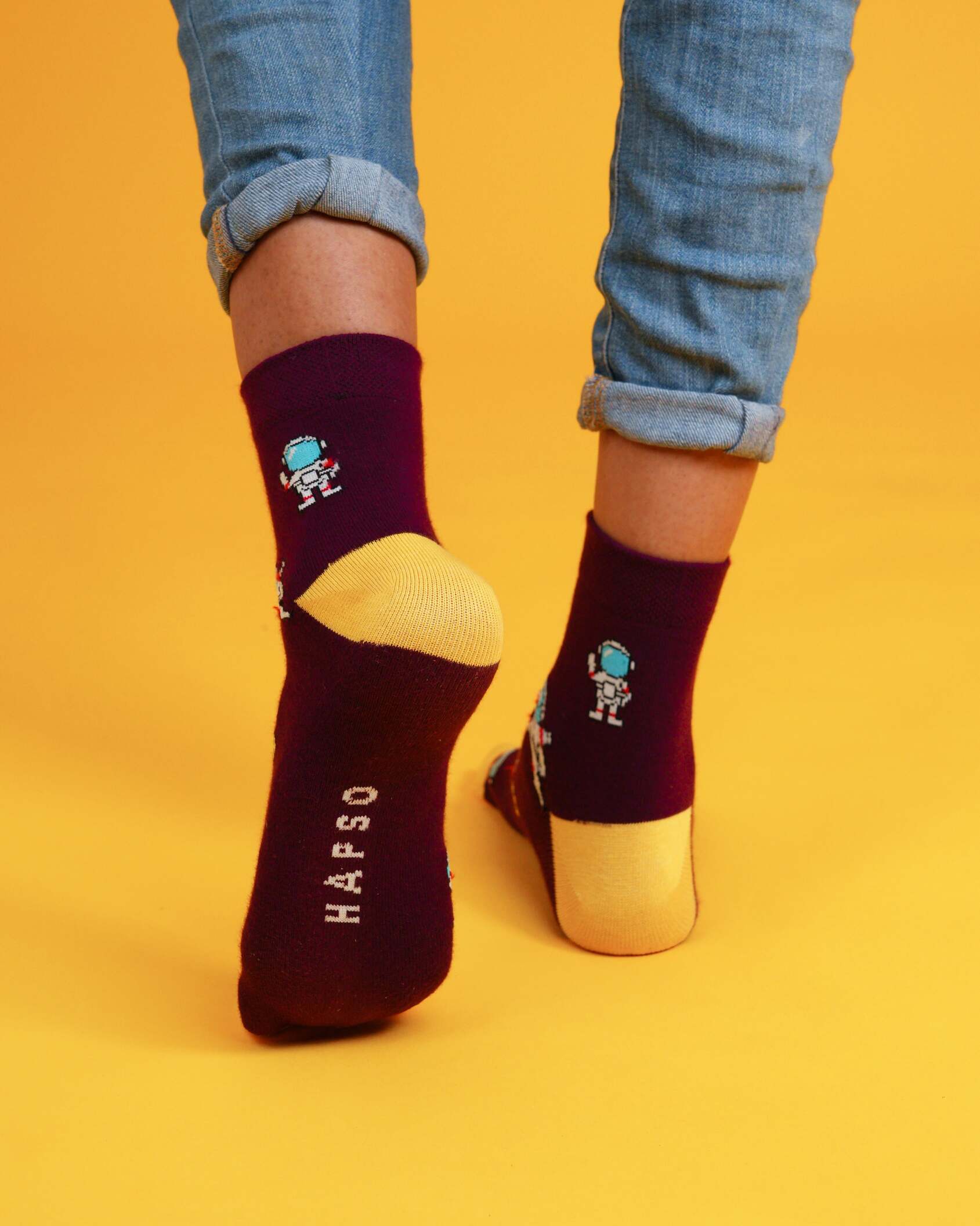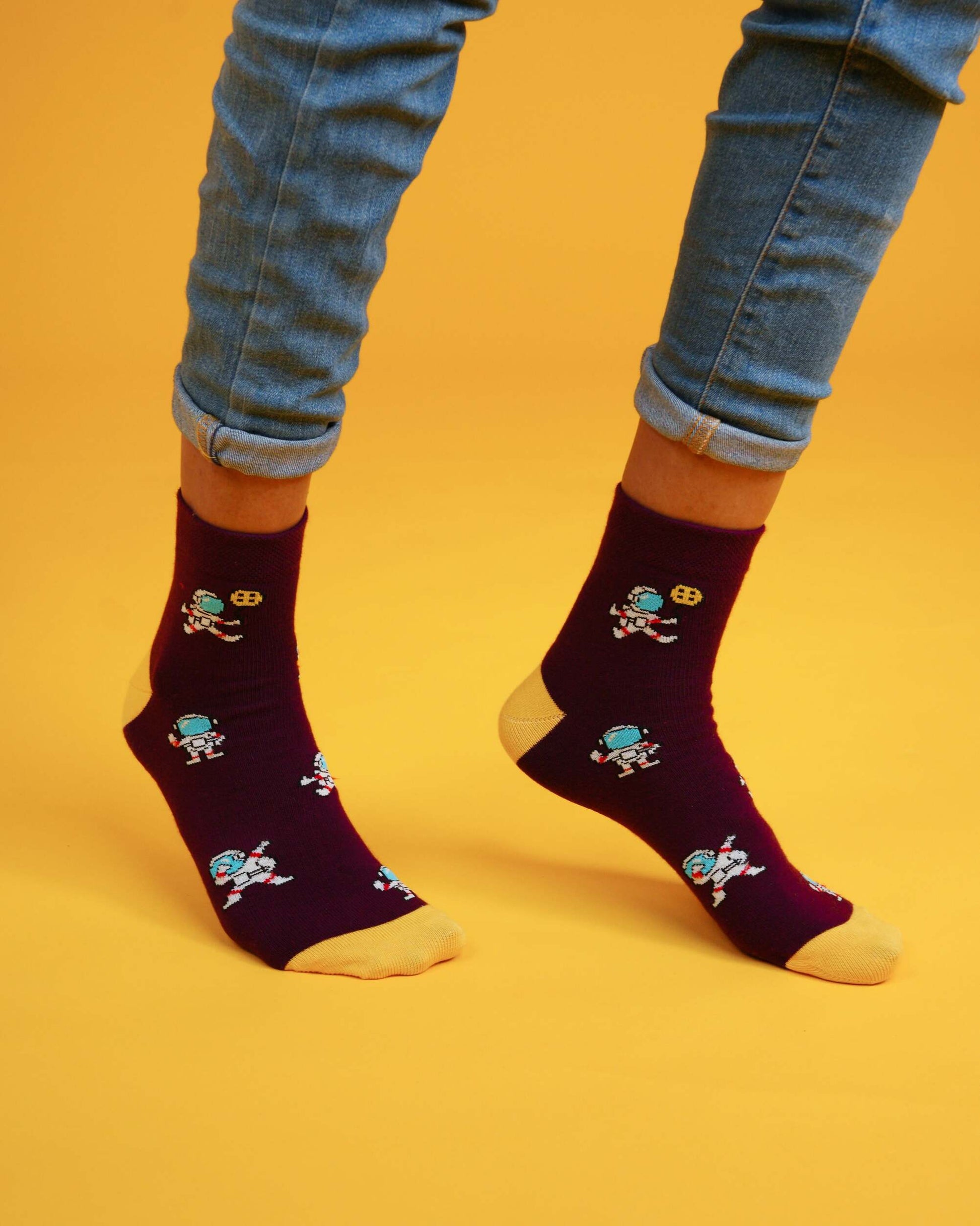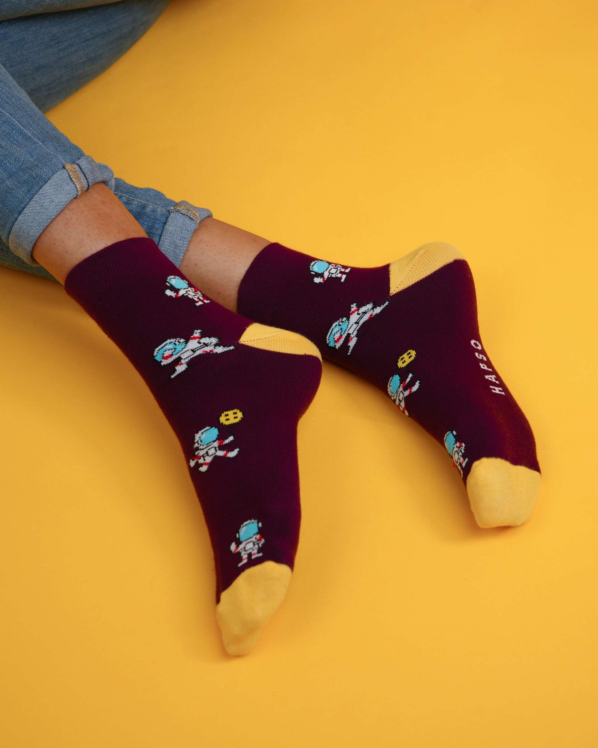 Spaceman burgundy socks
